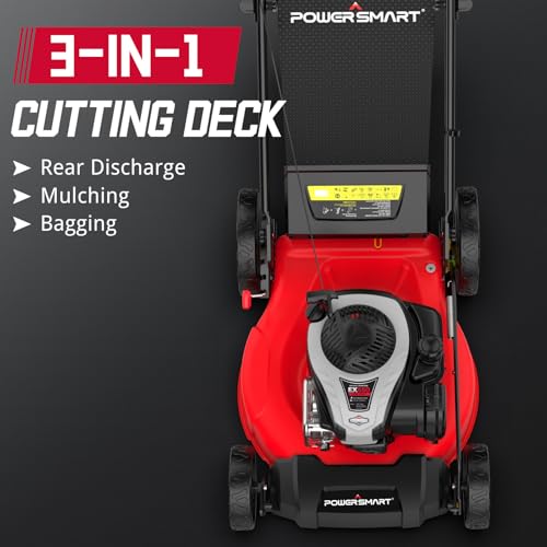 Click for More Images RELIABLE ENGINE: USA made Briggs and Stratton E550 140cc engine equipped with Prime 'N Pull for easy starting, delivers reliable power and low noise.3-IN-1: Mulch, rear discharge or bagging options for you choose, and the...