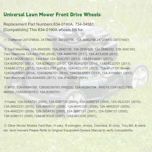 Click for More Images COMPATIBILITY: For MOST (but not all) Troy-Bilt, Bolens, AYP, Craftsman, Honda, Huskee, Husqvarna, Lawn-Boy, Murray, Poulan, Snapper, Toro, Yard Machines, Yard-Man 21 in., 22 in. and 23 in. walk-behind mowers.INCLUDED:...