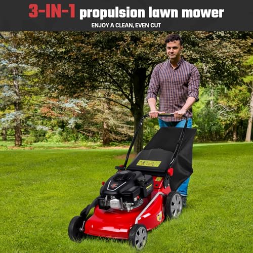 Click for More Images ??Self-Propelled Functionality?Equipped with rear-wheel drive and a single-speed self-propelled feature, this mower moves smoothly and effortlessly, making it ideal for large cutting areas. The comfortable, foam-wrapped,...