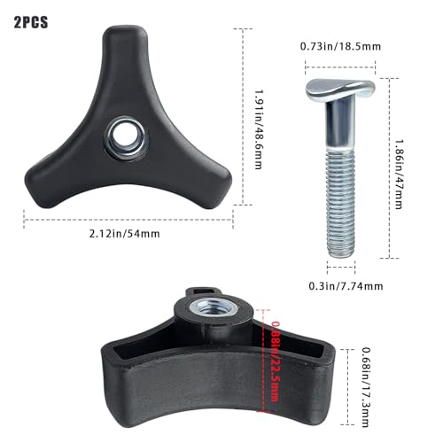 Click for More Images Package Includes: 2 Sets Lawn Mower Handle Knobs Nut Bolt ?2 Sets Triangle Handle Knob Screw Bolt Set ReplacementProduct Dimesnions: Triangular handle knob nut length is 54mm, bolt diameter is 7.74mm, screw length is 47mm,...