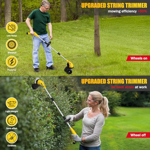 Click for More Images ?Powerful Cordless Performance for Effortless Lawn Care? Powered by two 18V 4.0Ah batteries, enjoy 60 minutes on low speed or 40 minutes on high speed—perfect for small to medium lawns. Note: Runtime may vary based on...